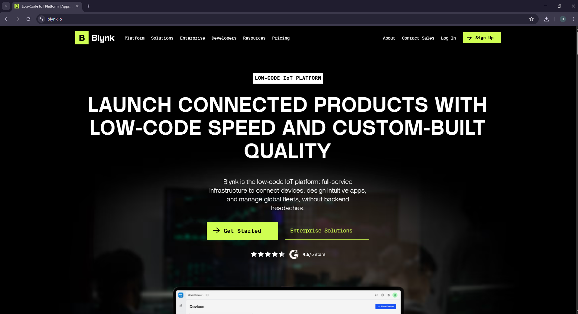 প্রজেক্টের প্রথম ধাপ হিসেবে এই লিংকে ক্লিক করে Blynk Platform-এ প্রবেশ করতে হবে। সেখানে গিয়ে Get Started বাটনটি সিলেক্ট করুন।
