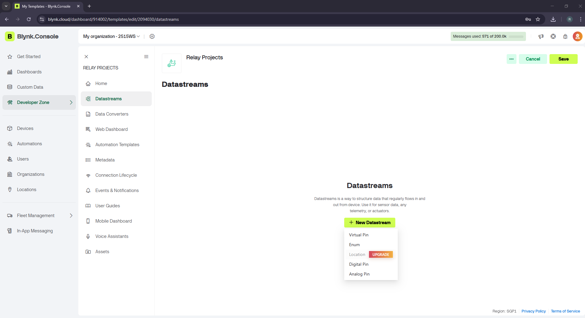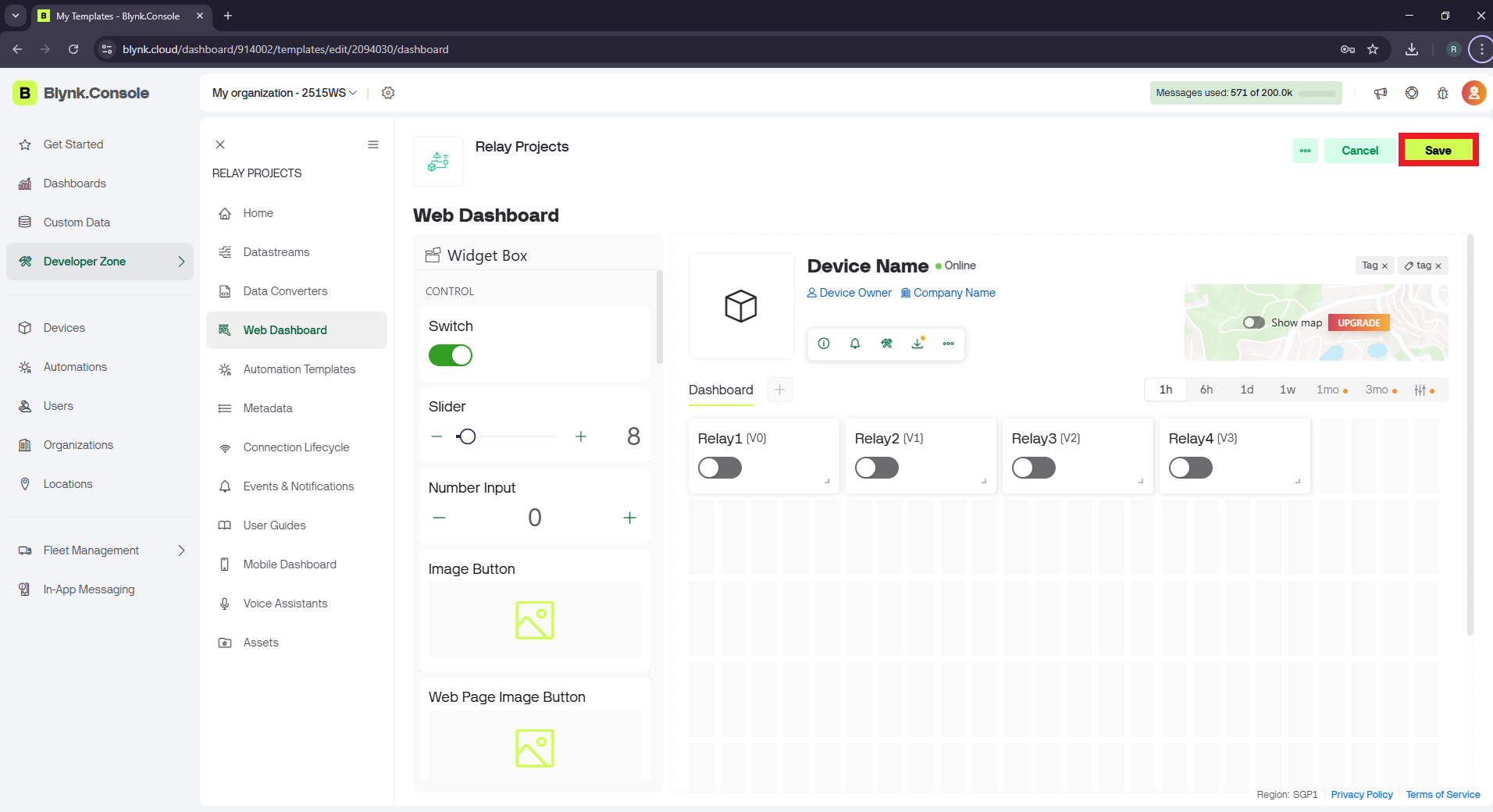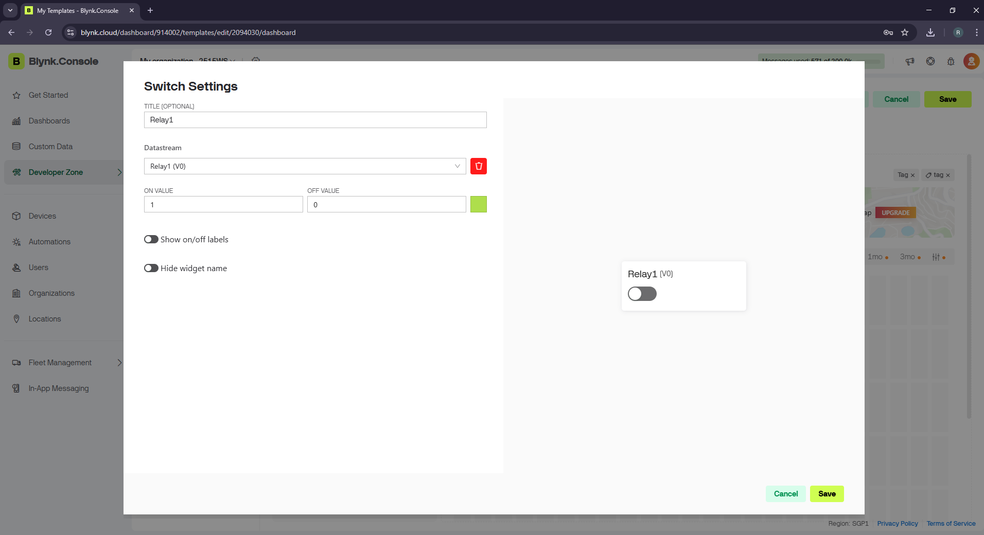 সেখানে Datastream Drop-down থেকে তৈরি করা Relay1 (V0) সিলেক্ট করে Save প্রেস করুন।