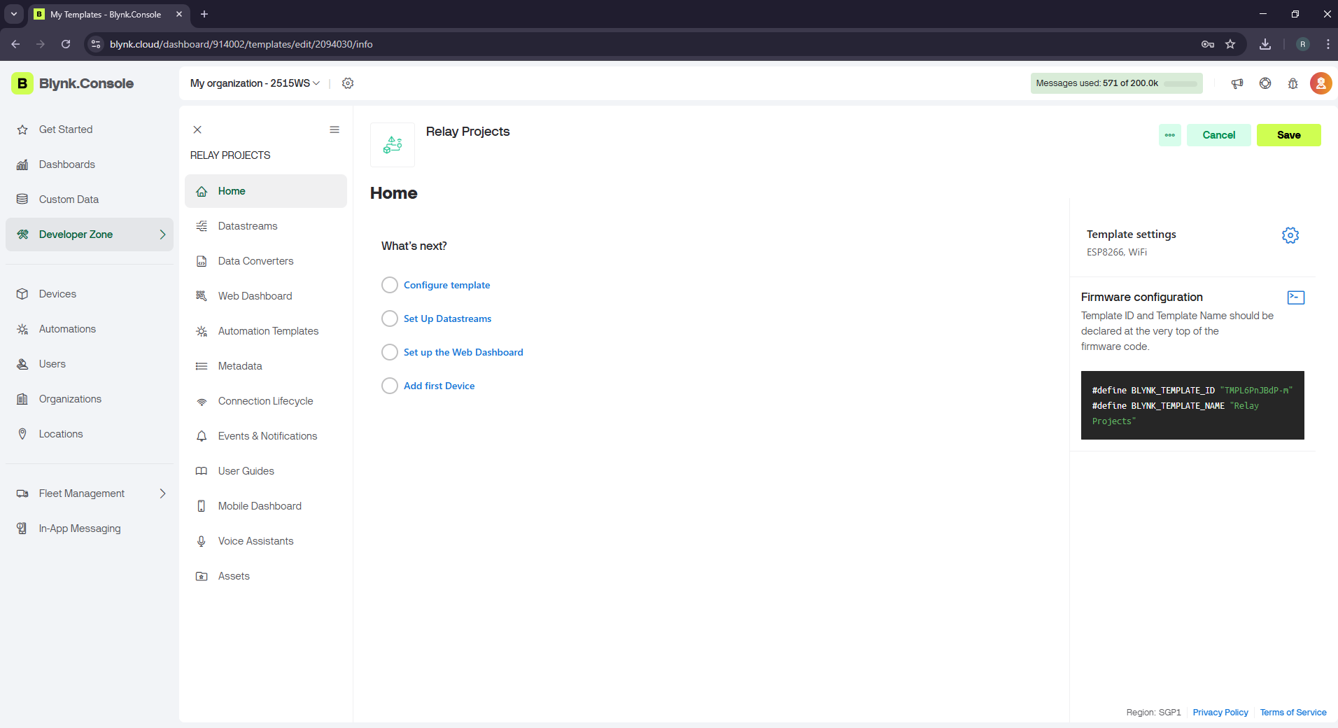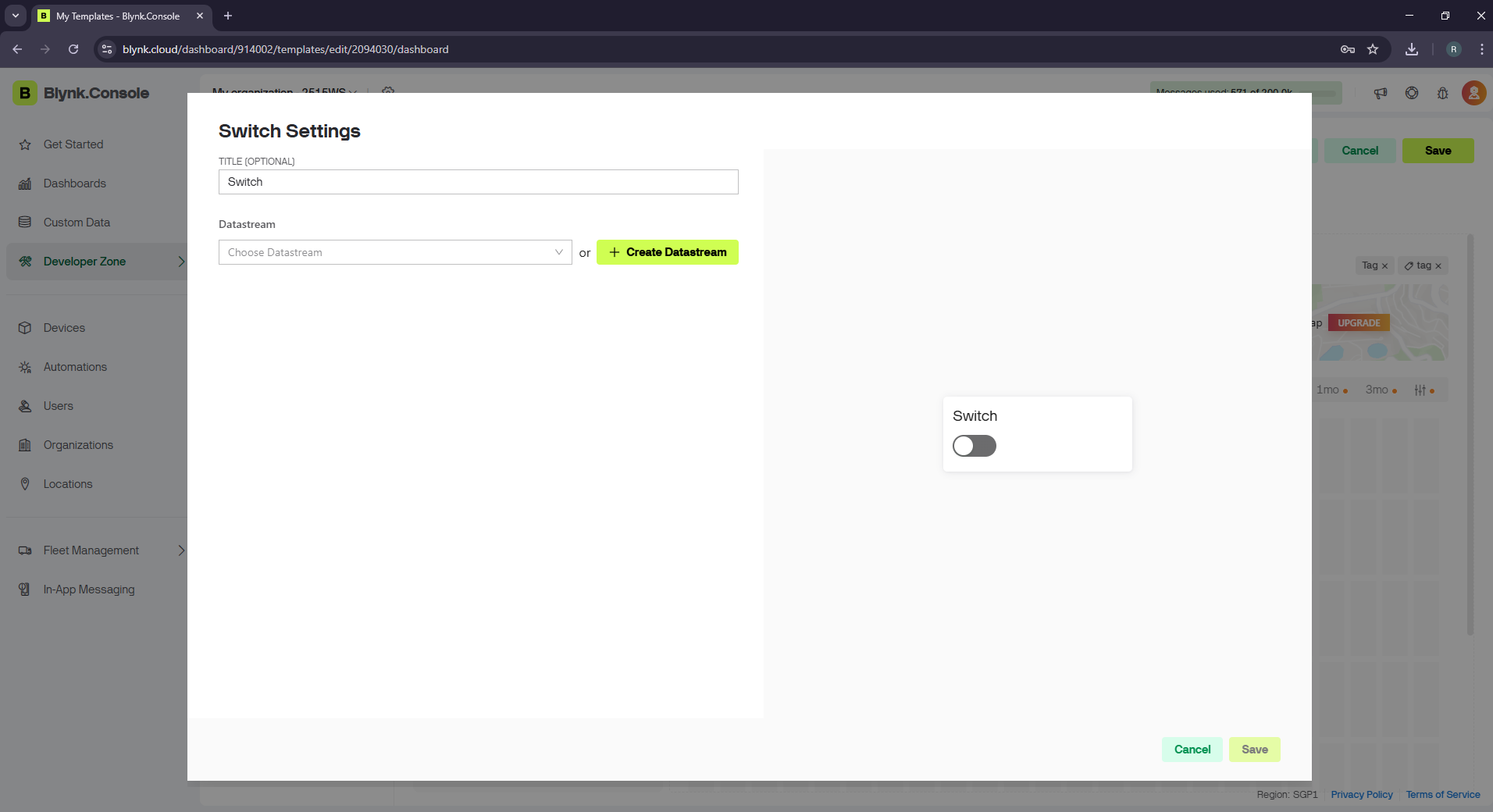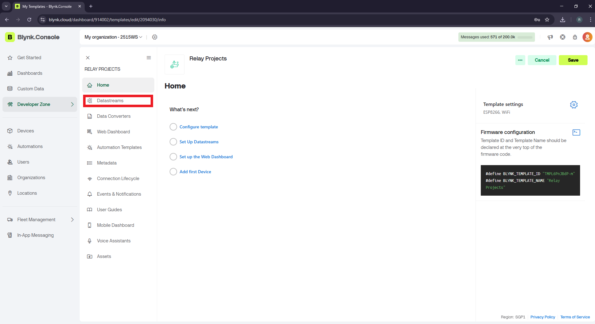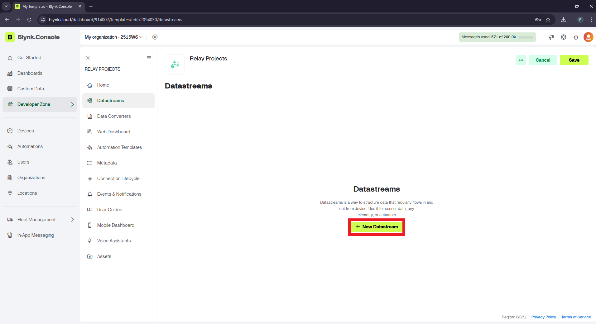 সেখানে Datastream Drop-down থেকে তৈরি করা Relay1 (V0) সিলেক্ট করে Save প্রেস করুন।