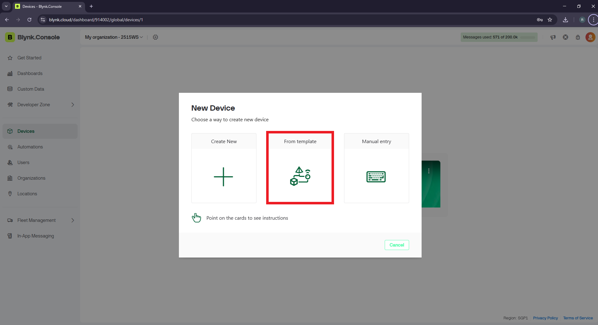 “+ New Device” বাটনে ক্লিক করে From Template সিলেক্ট করতে হবে।