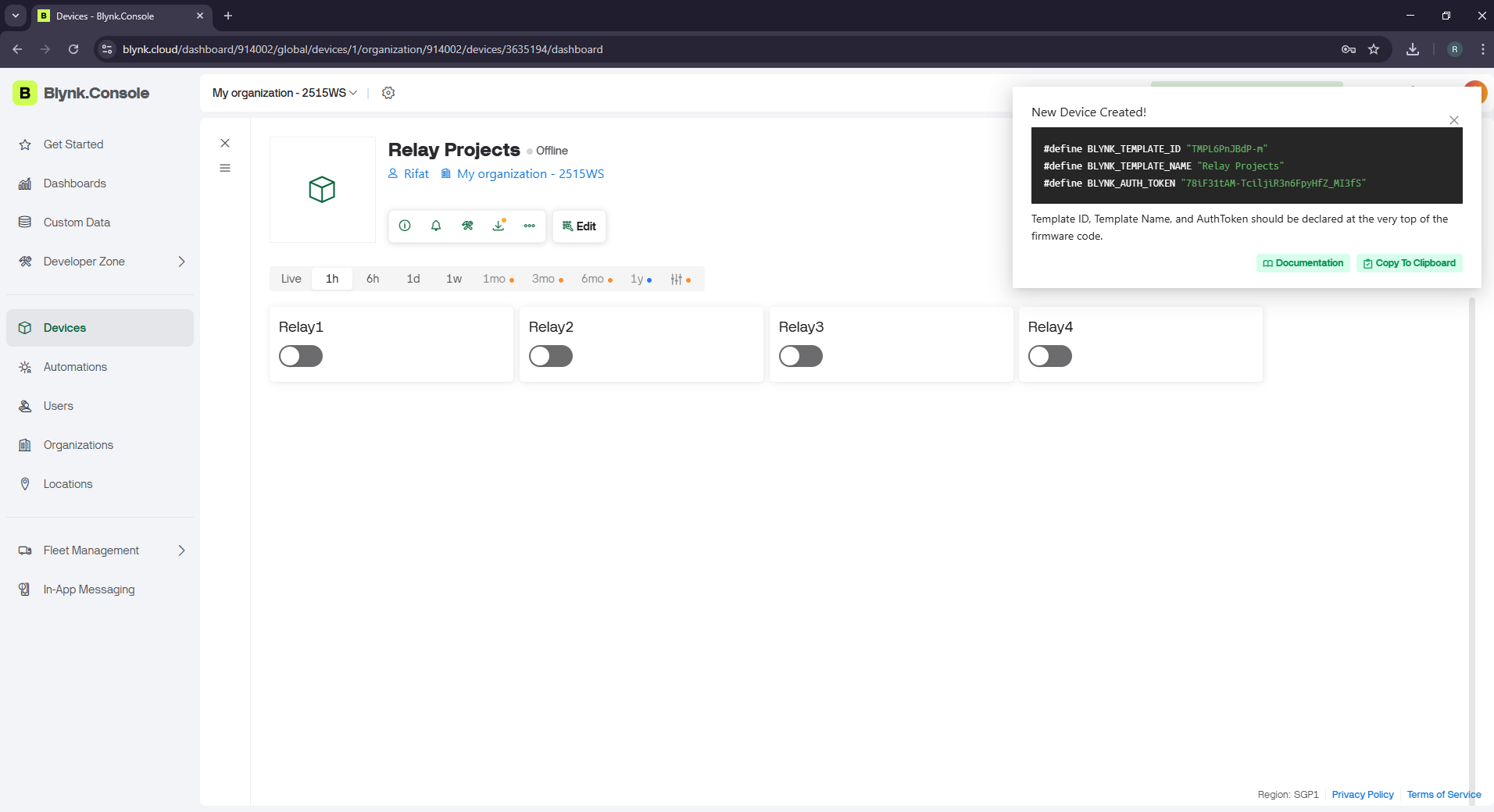 * Project: 4-Channel Relay Control via Blynk IoT (Active-LOW)
