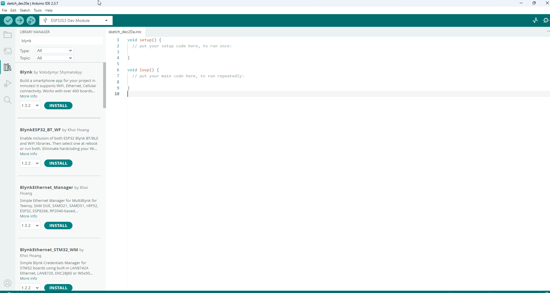 Arduino IDE ওপেন করে Sketch মেনু থেকে Include Library → Manage Libraries অপশনটি ক্লিক করুন। এখন “Blynk” লিখে সার্চ করুন এবং Blynk by Volodymyr Shymanskyy লাইব্রেরিটি Install করুন।